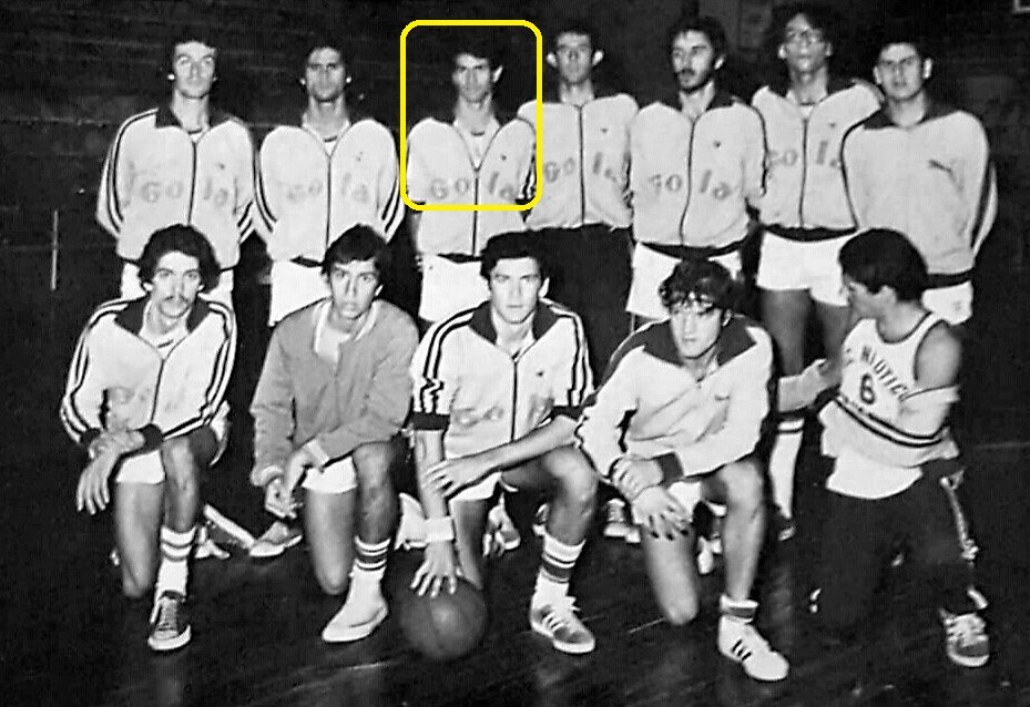 En esta foto del querido Manuel Fandiño (qdep) vemos a Trino en un clásico CB Canarias Caja Rural-RC Náutico en la cancha del colegio Luther king.