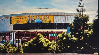 Bajas la autopista La Laguna-Santa Cruz (o viceversa) y notas algo nuevo en el Pabellón Insular Santiago Martín. Se trata de una gigantesca lona en la que además del escudo del CB Canarias en grande aparecen las imágenes de cinco de los jugadores que forman parte del LA LAGUNA TENERIFE 25-26. "Repiten"...