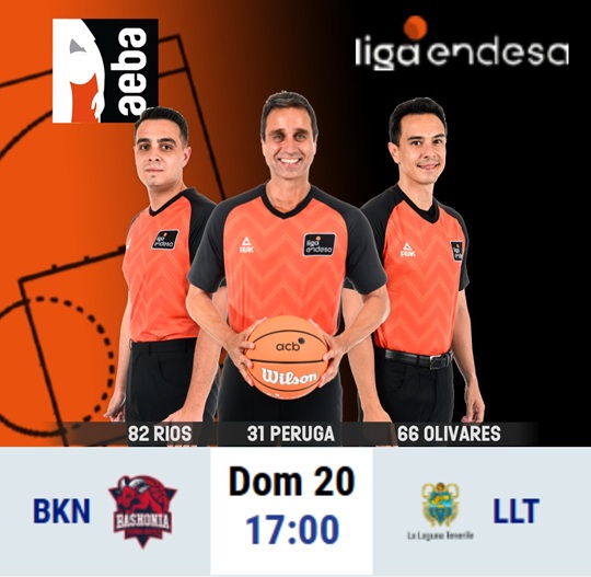 El área de arbitraje de la ACB ha designado a Carlos Peruga Embid árbitro principal del encuentro que mañana protagonizarán en el "Buesa Arena" de Vitoria Baskonia y La Laguna Tenerife, que dará comienzo a las 16:00 hora canaria. Le acompañarán Guillermo Ríos Marcos y Alfonso Olivares Iglesias. . En el Palau Blaugrana,...
