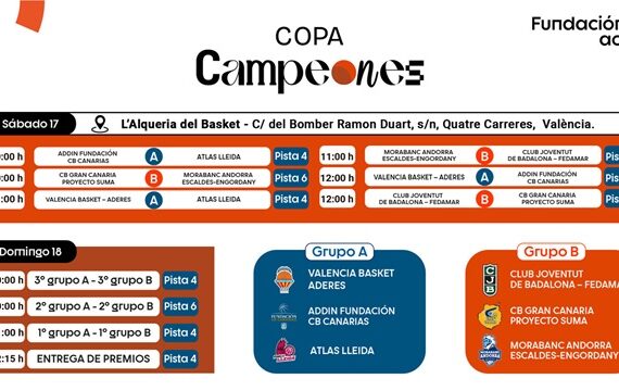 La Copa Campeones ya es una realidad. Nueva competición de baloncesto para personas con discapacidad intelectual ACB.COM Valencia Basket – Aderes, Atlas Lleida, Addin Fundación CB Canarias, Club Joventut Badalona – Fedamar, CB Gran Canaria Proyecto Suma y MoraBanc Andorra Escaldes-Engordany serán los seis equipos encargados de levantar el telón de la...