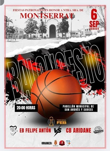 El Pabellón Municipal de San Andrés y Sauces, en La Palma, vivirá el día 6 de septiembre, próximo sábado, a partir de las 20:00 horas, el encuentro de pretemporada entre los conjuntos de la Tercera FEB EB Felipe Antón y CB Aridane. El encuentro forma parte del programa de actos con...