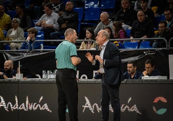En los segundos finales del encuentro de la BCL, disputado anoche en el Santiago Martín, los árbitros, a petición del comisario FIBA, señor Ángel Recuenco, interrumpieron la reanudación del juego por parte de Lenovo Tenerife, en campo ofensivo. AGUSTÍN ARIAS.- El argumento, la supuesta presencia no reglamentaria en cancha del base Bruno...