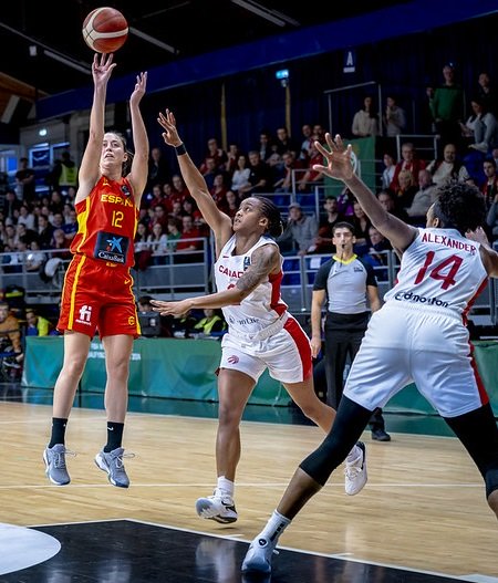 Sabía Miguel Méndez que hasta el domingo no se iba a decidir este grupo, pero la victoria ante Canadá (55-60) da confianza a España de cara a la ‘final’ ante Hungría. Y lo ha hecho con sus armas: construyendo desde la defensa. ÁREA DE COMUNICACIÓN FEB La mejor cifra del partido son...
