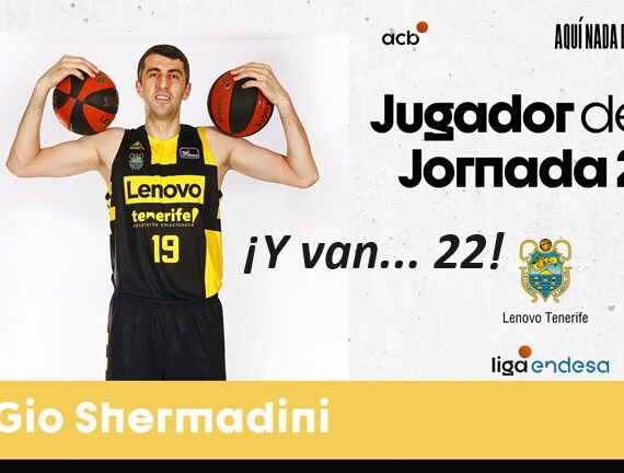 El pívot del Lenovo Tenerife consigue su 22ª nominación como Jugador de la Jornada tras establecer un nuevo tope personal de valoración en Liga Endesa (43), con 25 puntos, 5 rebotes, 7 mates, 4 asistencias y 4 recuperaciones ACB.COM ¡Y van 22! Giorgi Shermadini vuelve a coronarse como Jugador de la Jornada tras ser...