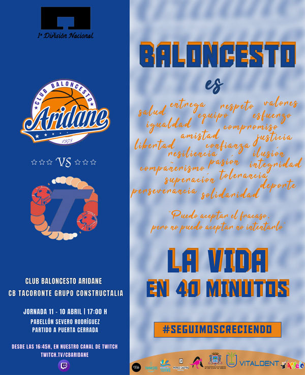 Este sábado 10 de abril, a las 17:00h en el pabellón Severo Rodríguez: CB Aridane – CB Tacoronte Grupo Constructalia.