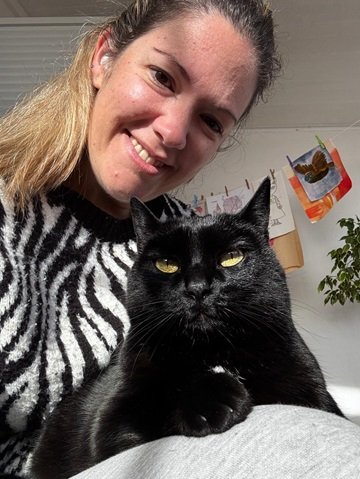 Beatriz Villamandos Lorenzo (en la foto de cabecera acompañada de «Luna», su gata, tenista internacional con España en la modalidad de tenis para sordos, conquistando importantes títulos europeos y mundiales, tiene un hobby realmente digno de elogio y de admiración: la pintura.