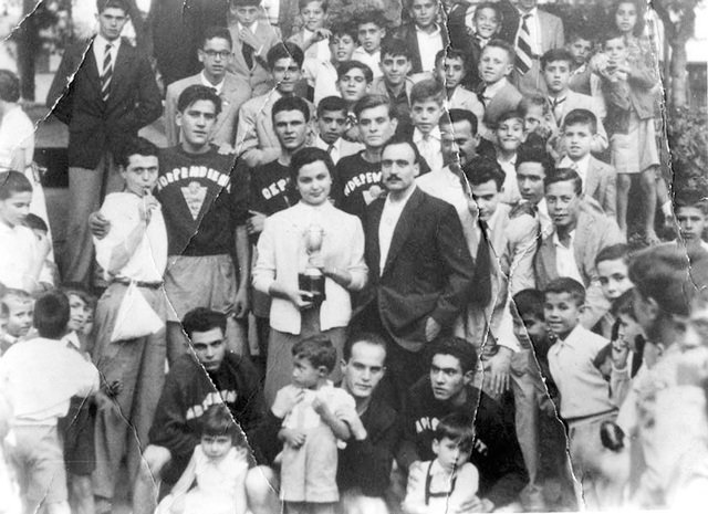 Fotografía tomada por el recordado fotógrafo de la Calle El Calvario de La Orotava Luis Portero oriundo de Chile. Corresponde al campeonato de la segunda categoría de Baloncesto Zona Norte, primavera del año 1955.