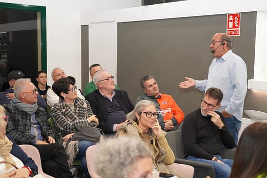 Con el transcurso de la entretenida charla Tachi Izquierdo tuvo el detallazo de acercarse al público y ceder micrófonos a los periodistas especializados en baloncesto y con más de 40 años de trayectoria profesional Javier Soto y un servidor, invitándonos a hacerle algunas preguntas al presidente aurinegro.