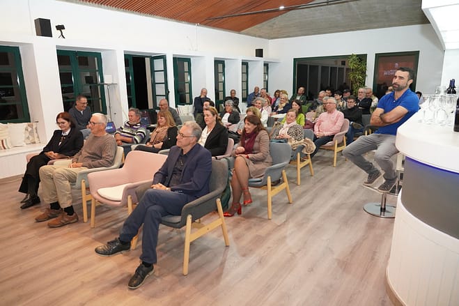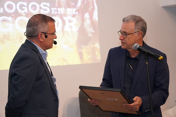 Tras la amena charla conducida por el periodista Tachi Izquierdo, el presidente de la Sociedad Tagoro, Martín Luna Fernández, hizo entrega de unos obsequios al invitado.