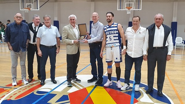 Se anunció por la megafonía del recinto la presencia del jugador, quien accedió acompañado por ya los citados al centro de la pista, donde los miembros de la junta directiva de la Sección, «Coco» Morales, presidente, y el directivo Dani Bercedo, entregaron una metopa con dedicatoria a un emocionado Greg Jursicin, estando presenta también Imo González, capitán del equipo de Tercera FEB.