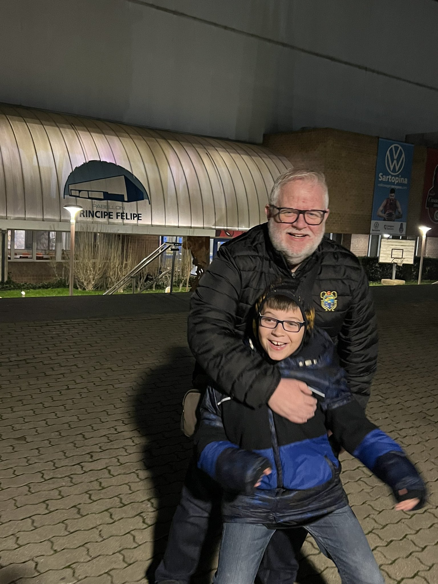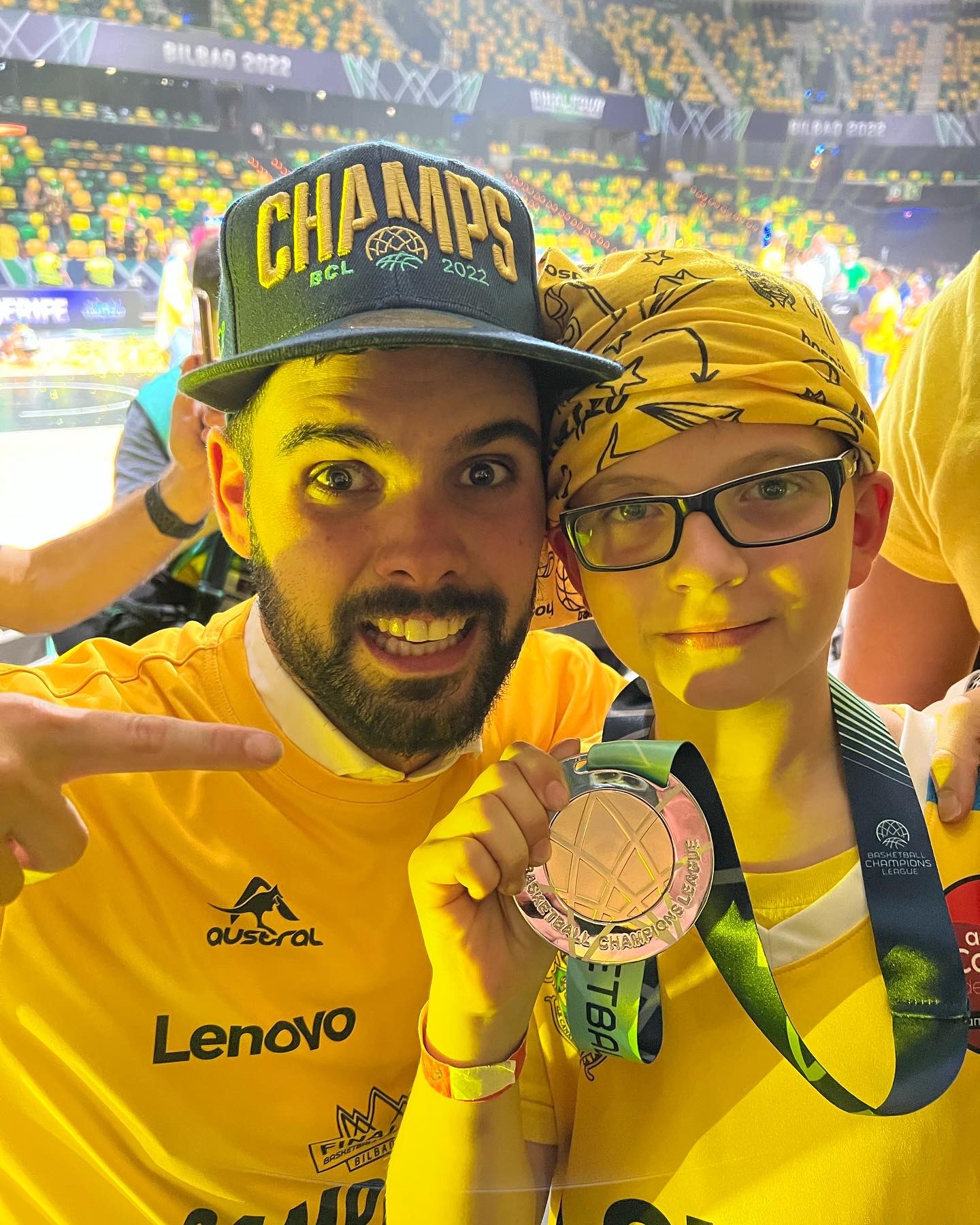También Arnau estuvo presente en el Bilbao Arena para vivir la conquista de la Champions League 2022. En la foto con David Hernández, quien le prestó la medalla conquistada