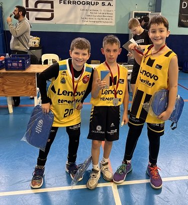 «Campeones del 3×3 de Caldes. Arnau y sus compañeros invictos en los 5 partidos disutados. Y la final ganada en la prórroga y con mucha tensión. De nuevo jugando con los colores aurinegros del @CB1939Canarias
