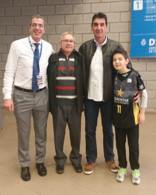 Juan Méndez, Agustín Arias, Óscar Peña y su hijo, en el hall del Santiago Martín