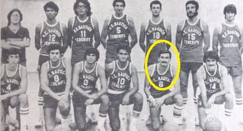 En el centro de la imagen, Juan Méndez, alias «el rana». «Made in Canary CB». Lo trajo Pepe Cabrera de La Palma siendo muy jovencito, fue júnior y subió al primer equipo. Participó en seis ascensos a Liga ACB con distintos clubes. Sus entradas a canasta siguen siendo recordadas hoy en día. En la actualidad trabaja para el CB Canarias, en el área de Eventos y Comercial.