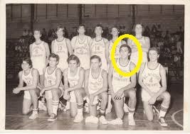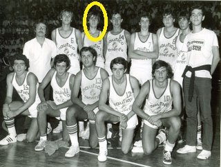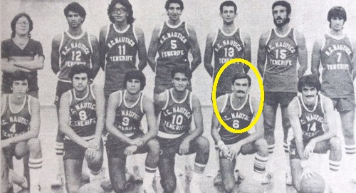 Con la bufanda en vertical vemos a Juan Carlos Recuenco, jugador del Náutico. Era más bueno que su hermano Ángel Recuenco, de ahí que se dedicara a arbitrar. Eso sí, don Ángel llegó a la ACB y fue internacional.