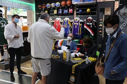 Se quedó con un libro dedicado el propietario de BASKET COUNTRY Arydani Sánchez. En un futuro próximo su tienda tinerfeña tendrá un rincón especial para el CB Canarias.