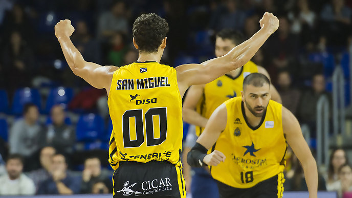 Un excelso Iberostar Tenerife conquistó el Palau al vencer en la prórroga por 91-93 al Barça Lassa, con canasta final de San Miguel. Ponitka (28 puntos, 38 de valoración) imperial, el otro gran culpable del bombazo aurinegro