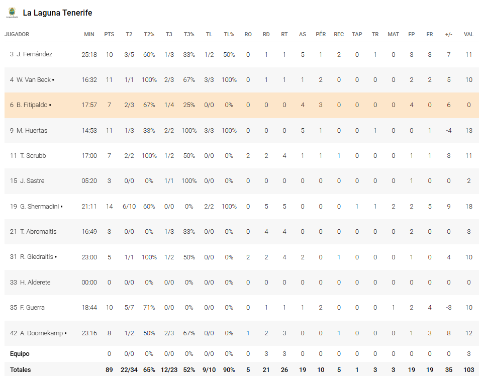 Ocho de los once jugadores con minutos valoraron por encima de la decena, quedando por debajo tan solo Tim Abromaitis (+3) y Sastre (+2), con ambos sumando un acierto desde el 6,75, además de los cuatro rebotes del norteamericano.