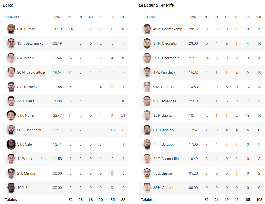 Si ante el Nymbruk, en la BCL, la imagen del conjunto de Vidorreta superaba lo anterior, incluyendo la efectividad desde el 6,75, esta tarde en cancha azulgrana se disfrutó del juego tradicional del CB Canarias, es decir, intensidad defensiva, mínimas pérdidas, mejoría notable en la pugna por el rebote y, lo mejor, firmar un 52% de acierto en el triple, con 12 canastas de 23 lanzamientos.