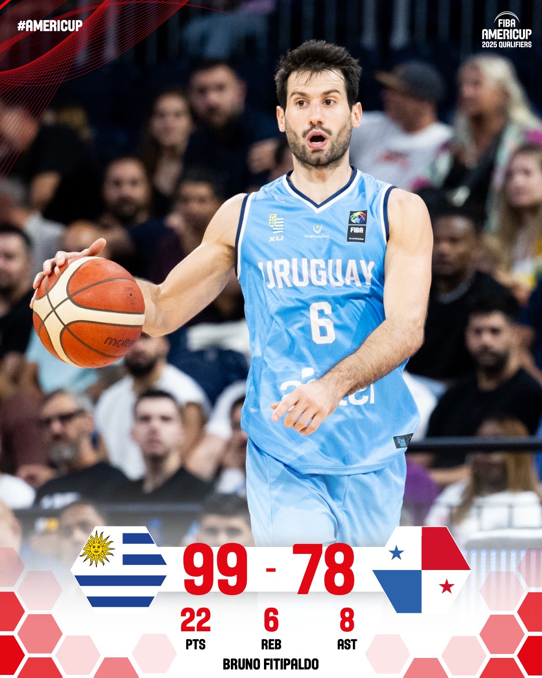 Bruno Fitipaldo (Uruguay): 24:51 minutos. 22 puntos (5/5 en triples). 6 rebotes. 8 asistencias. Valoración: +38