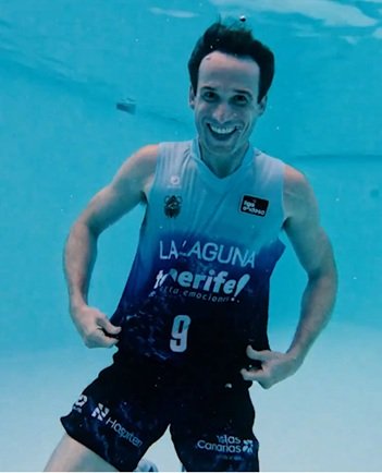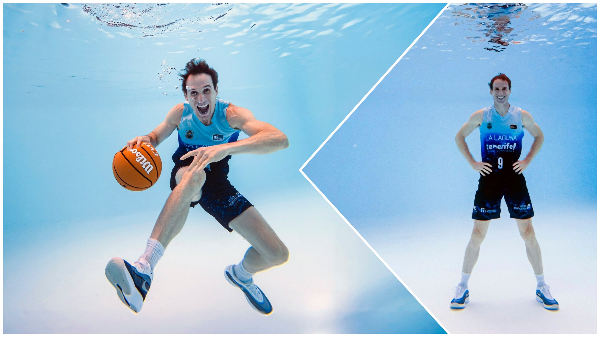 El fotógrafo Emilio Cobos, quien pertenece al organigrama del CB Canarias 1939, a la vez que hace trabajos en competiciones nacionales e internacionales para la ACB, no dudó en meterse en la piscina para obtener un excelente reportaje gráfico y visual, con un protagonista de excepción: MARCELINHO HUERTAS.