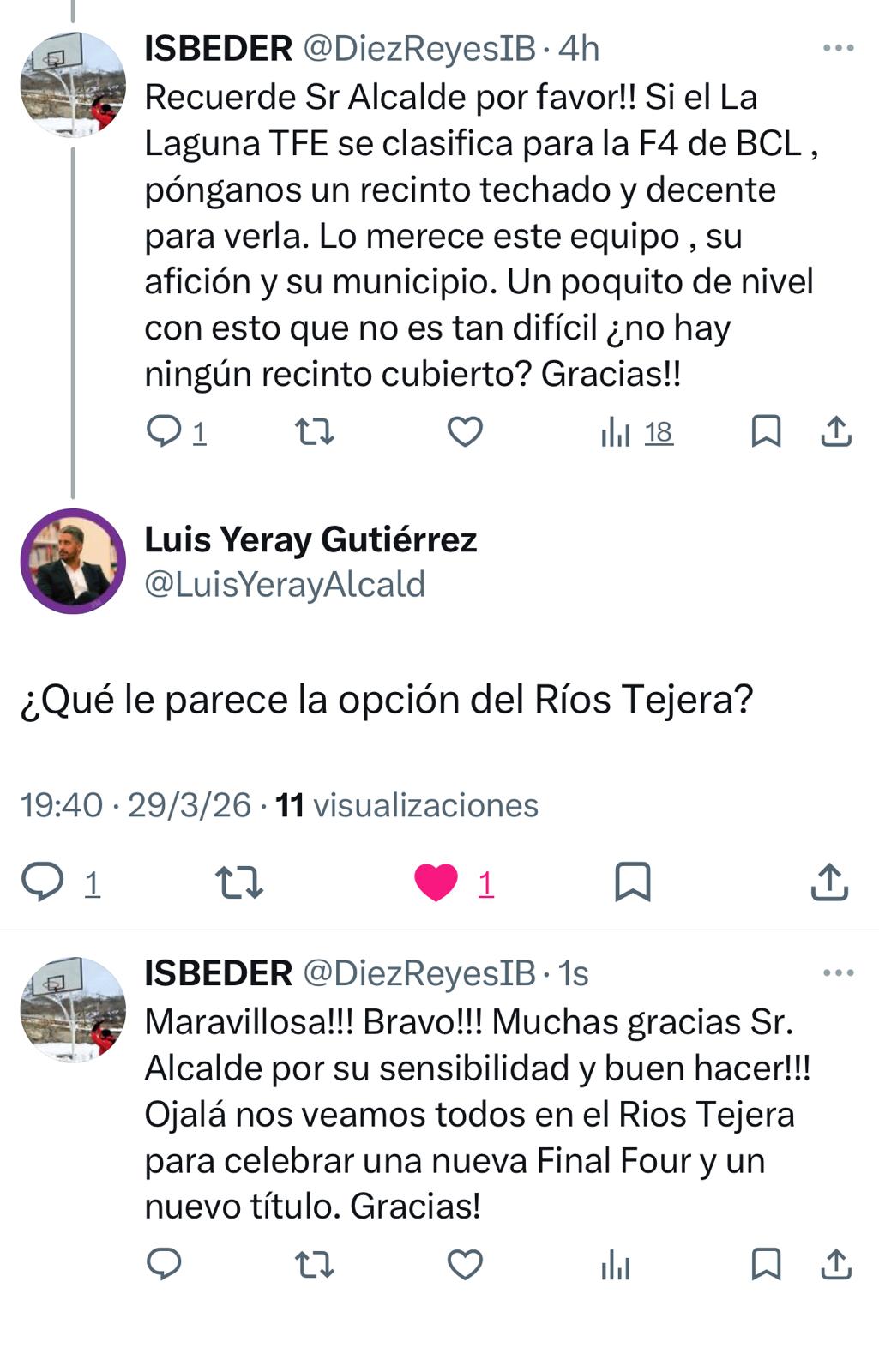 La basketmaniaka TRINITY, participante en el concurso de PRONOS, conecto con el alcalde de San Cristóbal de La Laguna, LUIS YERAY GUTIÉRREZ, a través de su página en «X».