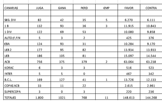 JOSÉ ANTONIO PÉREZ PADRÓN, el «rey de las estadísticas» en el baloncesto tinerfeño, nos sorprende con la noticia del partido número 1.800 del CB Canarias en competiciones nacionales e internacionales.
