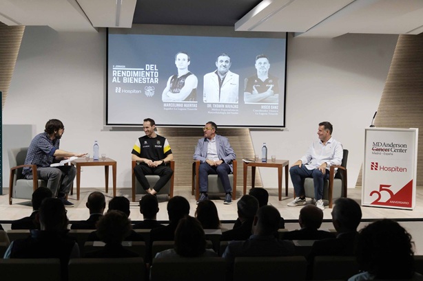 El auditorio de la Fundación MD Anderson Cáncer Center-Hospiten fue este lunes escenario de la segunda edición «Del rendimiento al Bienestar», un encuentro organizado por el Club Baloncesto Canarias y Hospiten que reunió a distintos profesionales del deporte y la salud, con el objetivo de poner en valor la importancia de la prevención, el descanso y la recuperación, con una conexión directa al rendimiento deportivo y el bienestar integral.