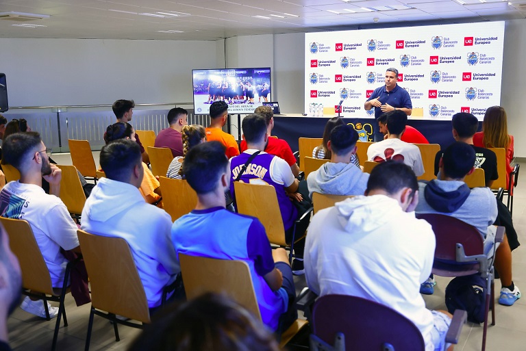 El CB Canarias y la Universidad Europea de Canarias organizaron en la tarde del jueves, 18 de mayo, una jornada de puertas abiertas en la que alumnos actuales y futuros alumnos universitarios tuvieron la oportunidad de acudir a varias ponencias impartidas por integrantes del cuerpo técnico del Lenovo Tenerife, así como participar en una visita a las instalaciones y áreas de trabajo de la entidad aurinegra en el Pabellón de Deportes de Tenerife Santiago Martín.