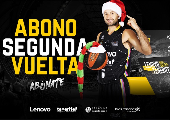 El Lenovo Tenerife activará a partir de mañana miércoles día 21 de diciembre la venta de abonos para la segunda vuelta de la Liga Endesa 22/23, un regalo idóneo para estas fechas navideñas y un ahorro con respecto a lo que supondría luego la compra de entradas ordinaria partido a partido.