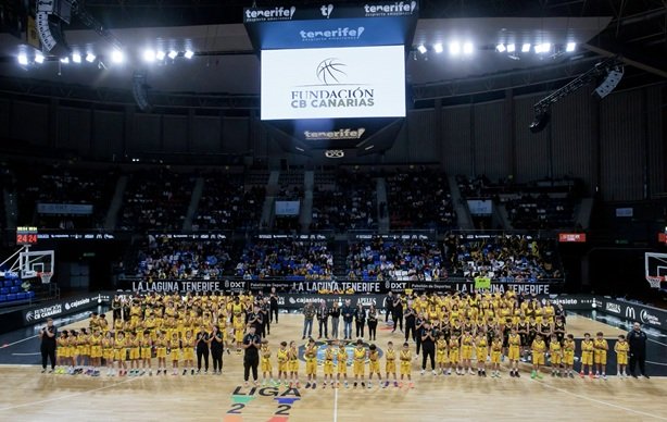 El CB CANARIAS realizó hoy, en el descanso del encuentro Fundación CB Canarias-Real Madrid, de la Liga U22, la presentación de su cadena de filiales en la temporada 25-26.