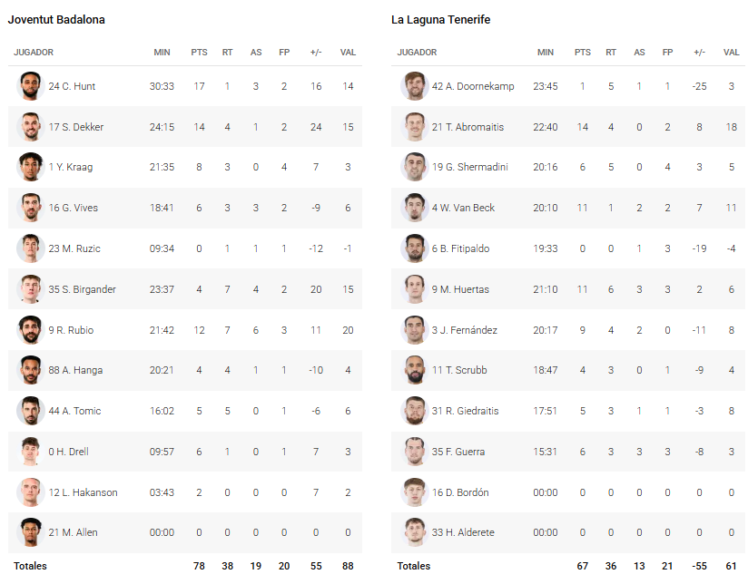 A La Laguna Tenerife le faltó, consecuencia de lo dicho, ser algo más regular en sus arreones. Porque cada vez que ponía freno a la reacción local y le daba la vuelta al electrónico de inmediato volvía a caer en los mismos errores, incluso falta de concentración lo que supo aprovechar el Joventut, quien con esta victoria se acerca un poco más a la Copa del Rey.