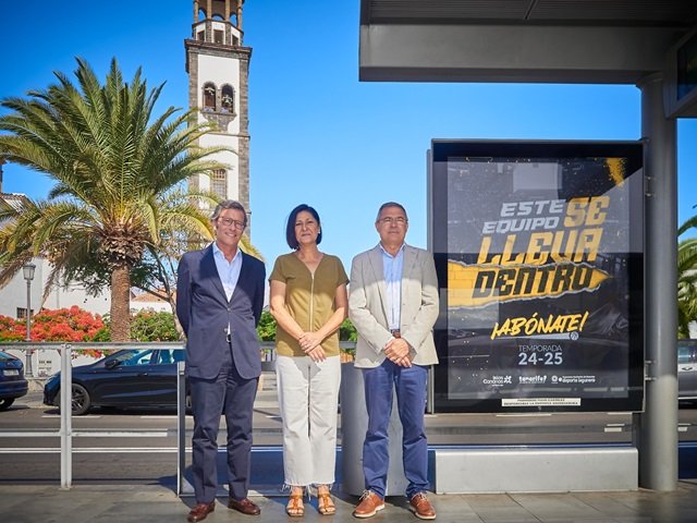 El Cabildo de Tenerife, a través de Metrotenerife, y el Club Baloncesto Canarias han renovado un año más el acuerdo de colaboración para promocionar la nueva campaña de abonos del equipo aurinegro La Laguna Tenerife que bajo el lema ‘Este equipo se lleva dentro’, se publicitará en los mupis de la red de paradas del tranvía. Una alianza que cumple 13 años apoyando el deporte y fomentando la movilidad sostenible.