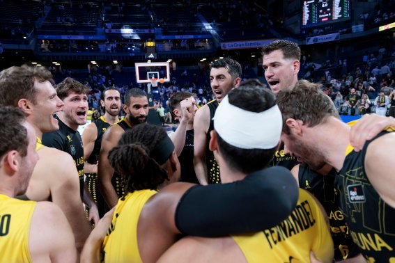 «¡Ños, llevamos dos partidos seguidos de celebraciones en el vestuario!», parece pensar Juanma Gatti, ayudante de Vidorreta. El miércoles para festejar el +40 ante Galatasaray y el pase a la Final Four; el domingo por el gran triunfo en la cancha del líder Real Madrid