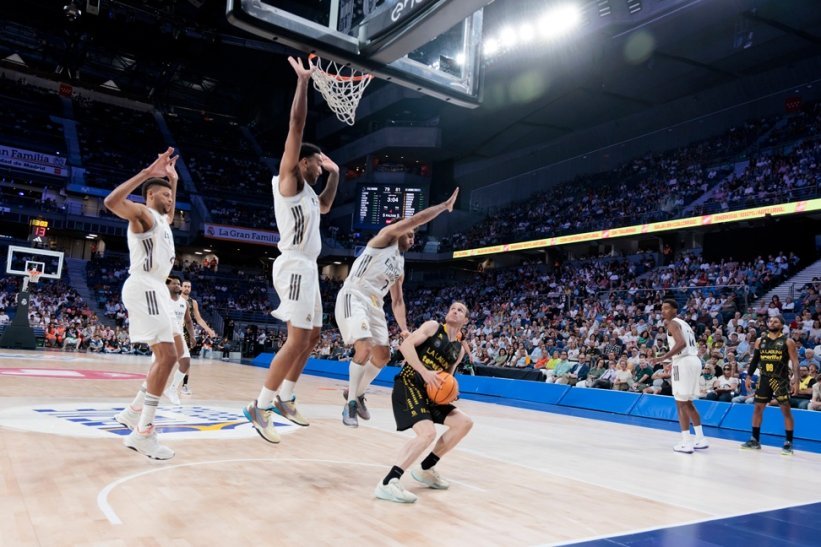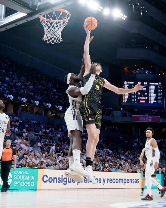 ¡»Aparta, chaval!», sería el mensaje en la pintura merengue de GIO SHERMADINI ante la presencia de Garuba. Tanto a él como a Tavares, el georgiano firmó dos espectaculares mates