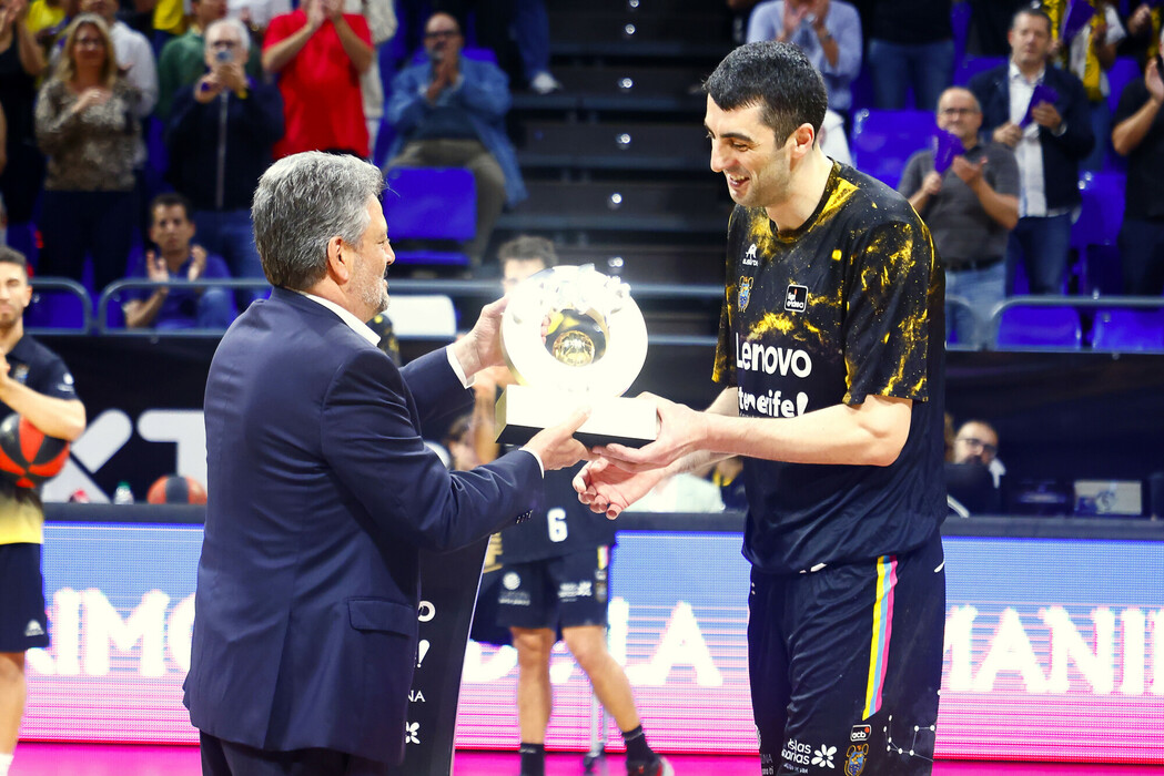 Giorgi Shermadini ha recibido este sábado, en los prolegómenos del encuentro que disputa el Lenovo Tenerife frente al Joventut Badalona, el galardón que conquistó como MVP Movistar del mes de enero.