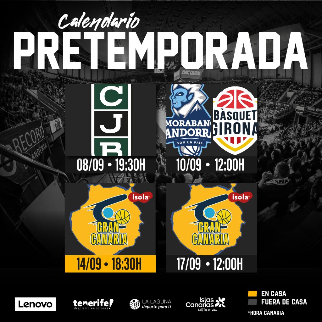 El conjunto canarista se medirá el viernes día 8 al Joventut de Badalona, en la localidad ilerdense de Les Borges Blanques (19:30 hora canaria); y luego se enfrentará el domingo día 10, en el mismo escenario y a partir de las 12:00 hora insular, a otro rival ACB, concretamente al que pierda del cruce de la Liga Catalana entre el Básquet Girona y el Morabanc Andorra del día 7 de septiembre.
