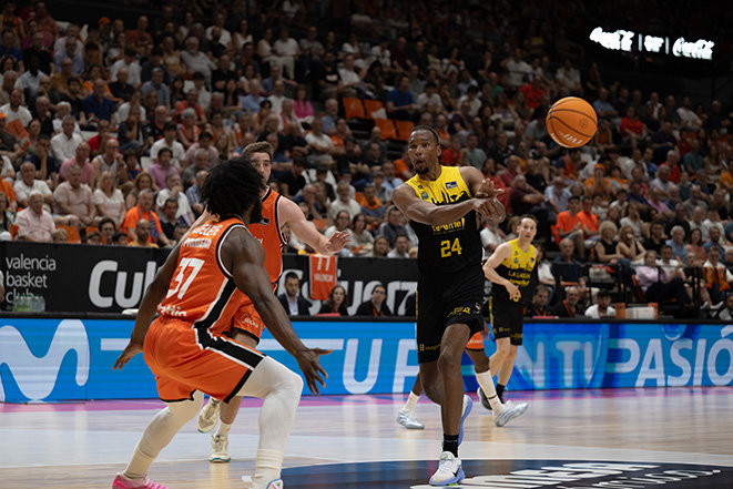 Sufrió entonces el Canarias, cuyos porcentajes de acierto no eran los deseados. Con Gio Shermadini metido pronto en problemas de faltas, la escuadra taronja aprovechó la calidad de Jean Montero para ampliar su renta. Los triples de Bruno Fitipaldo, primero; y diez puntos casi consecutivos, después, de Lluís Costa, intentaban sostener a La Laguna Tenerife, pero en ese intercambio de golpes eran los locales los que más cómodos se encontraban.