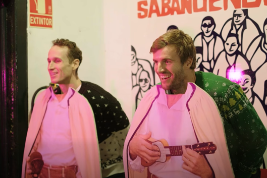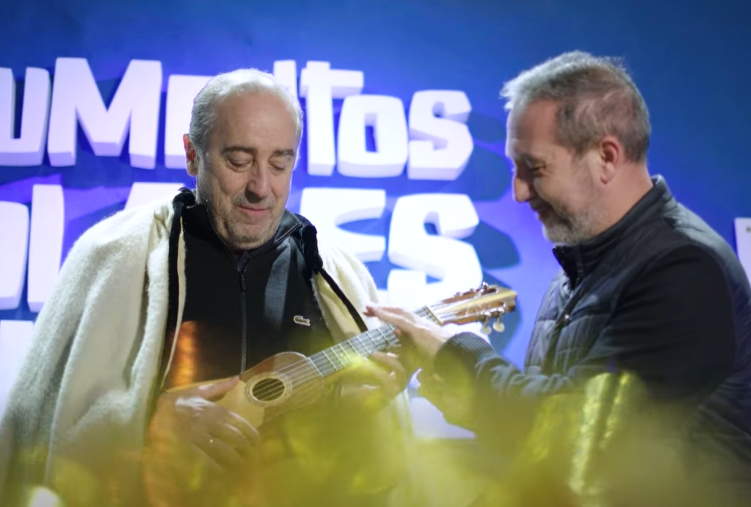 También vimos a Shermadini tocando el tambor y a Huertas con un timple en sus manos.