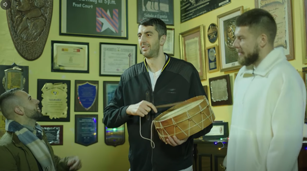 El jugador del momento, AARON DOORNEKAMP se partió de risa al ver a ciertos compañeros tocando algún instrumento. Incrédulo,Rokas sigue el asunto.