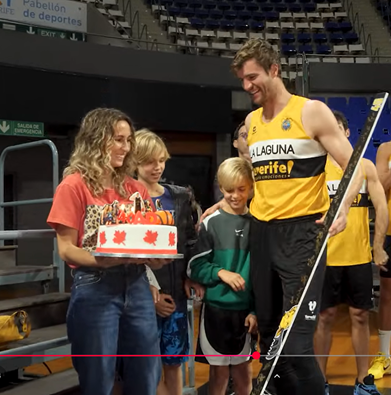 El ala-pívot AARON DOORNEKAMP cumplía los CUARENTA años sus compañeros de vestuarios, stage técnico y otros miembros del CB Canarias lo sorprendieron cuando el canadiense hizo acto de presencia en la cancha.