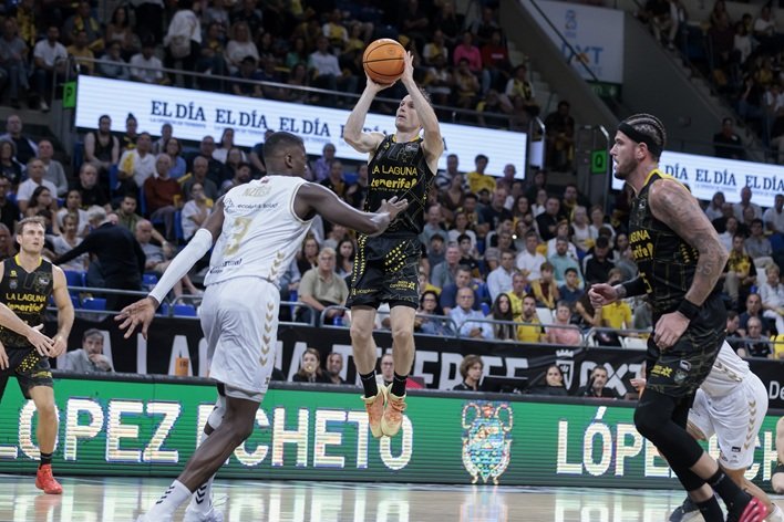 La Laguna Tenerife cosechó esta tarde su quinta victoria de seis jornadas en la Liga ACB. Los de Txus Vidorreta se impusieron al Recoletas Salud San Pablo Burgos por un apretado 101 a 97, con dos hombres destacados por cada bando: Marcelinho Huertas (28 puntos y 9 rebotes; +37 de valoración) y Gio Shermadini (14 tantos + 6 capturas; 24 de valoración), por parte canarista; el portorriqueño Jameel Jackson (24 puntos y 24 de valoración) y Corbalán (17 puntos y 15 de valoración), por el plantel entrenado por Bruno Savignani.