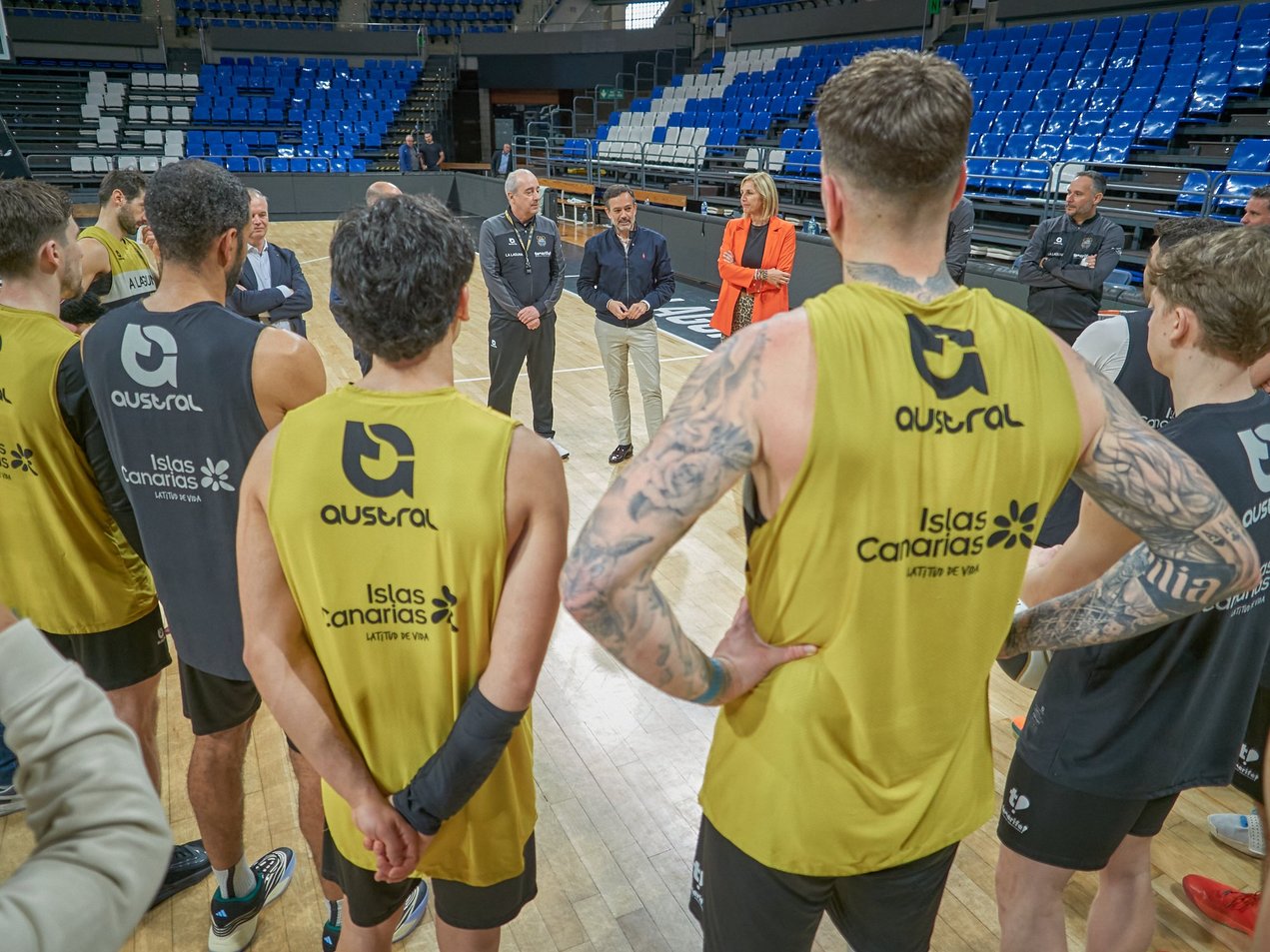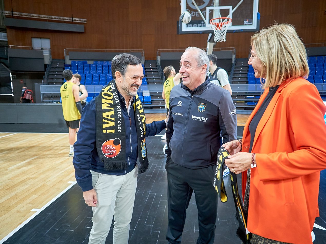 El vicepresidente del Cabildo de Tenerife, Lope Afonso, y la consejera de Deportes, Yolanda Moliné, visitaron este miércoles al Club Baloncesto Canarias, antes de que ponga rumbo a la Copa del Rey 2026, que se disputará en Valencia del 19 al 22 de febrero. La visita institucional, celebrada al término del entrenamiento en el Pabellón Santiago Martín, reunió también al presidente del club, Aniano Cabrera, y al director general, Eusebio Díaz. Todos ellos, acompañaron a la plantilla aurinegra, en un acto de apoyo, antes de emprender el viaje hacia su decimotercera participación copera, la décima consecutiva.