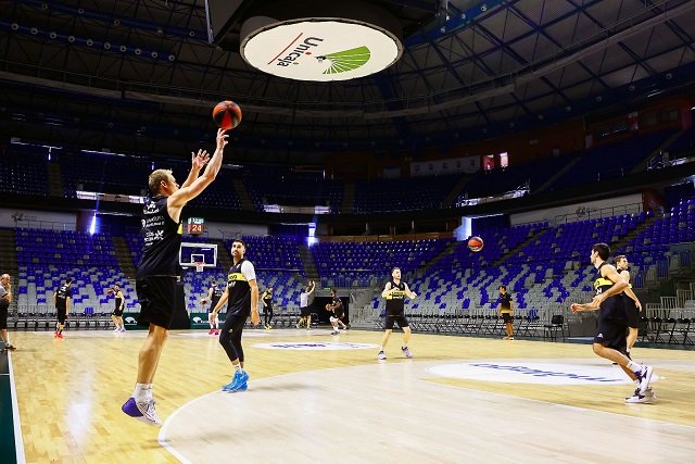 Tras llegar la expedición a Málaga y alojarse en el hotel de concentración, los aurinegros se desplazaron al Pabellón Martín Carpena para volver a tener contacto con los aros.