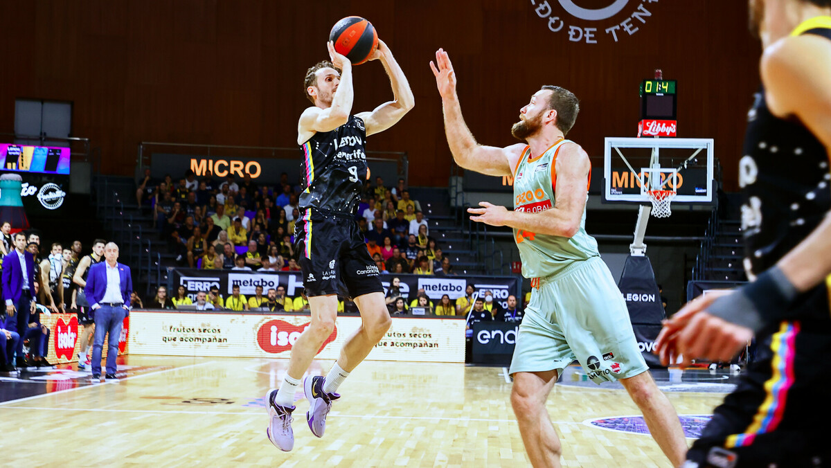 Sumó 21 puntos que lo consolidan como cuarto máximo anotador histórico del club tinerfeño, además de ejecutar una canasta inverosímil para poner un +3 en el marcador a 21 segundos para el final.