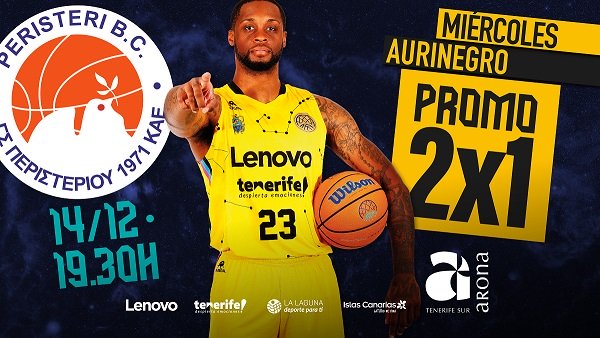 ¡Vuelven los “Miércoles Aurinegros”! El Lenovo Tenerife activará este miércoles día 7 de diciembre una promoción de 2×1 para el partido contra el Peristeri Bwin del próximo 14 de diciembre, correspondiente a la jornada 5 de la Basketball Champions League (Santiago Martín, 19:30 hora canaria).