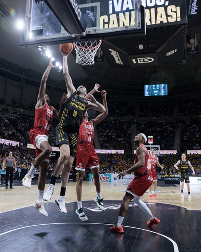 Shermadini seguía a lo suyo como dueño y señor de la «pintura», compartiendo el «cinco» con Guerra, si bien el georgiano acabó con 25 minutos, por los 11 del grancanario. El tercero de los interiores, Kosta Kostadinov, apenas disputó 3:20 al cargarse muy pronto con dos personales.