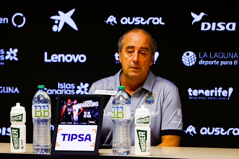 Txus Vidorreta comparecióo en el día de hoy en sala de prensa del Santiago Martín para hablar del interesante encuentro de mañana frente al siempre peligroso Obradoiro de Moncho Fernández, otro «viejo rockero» en los banquillos de la ACB.