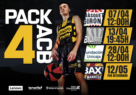 El Lenovo Tenerife activará a partir de este miércoles, a las 10:00 horas, la venta del ‘Pack 4 ACB’, una iniciativa que incluirá los cuatro últimos partidos de la fase regular de la Liga Endesa que dispute el primer equipo aurinegro en el Pabellón de Deportes de Tenerife Santiago Martín.