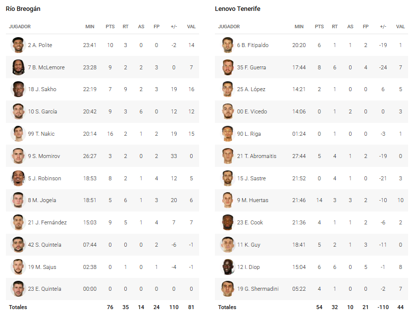 La ya comentada lesión de Gio (solo estuvo 5 minutos en pista) mermó considerablemente el juego aurinegro, siendo el mejor valorado y con solo +10 el base Huertas, autor de 14 puntos.
